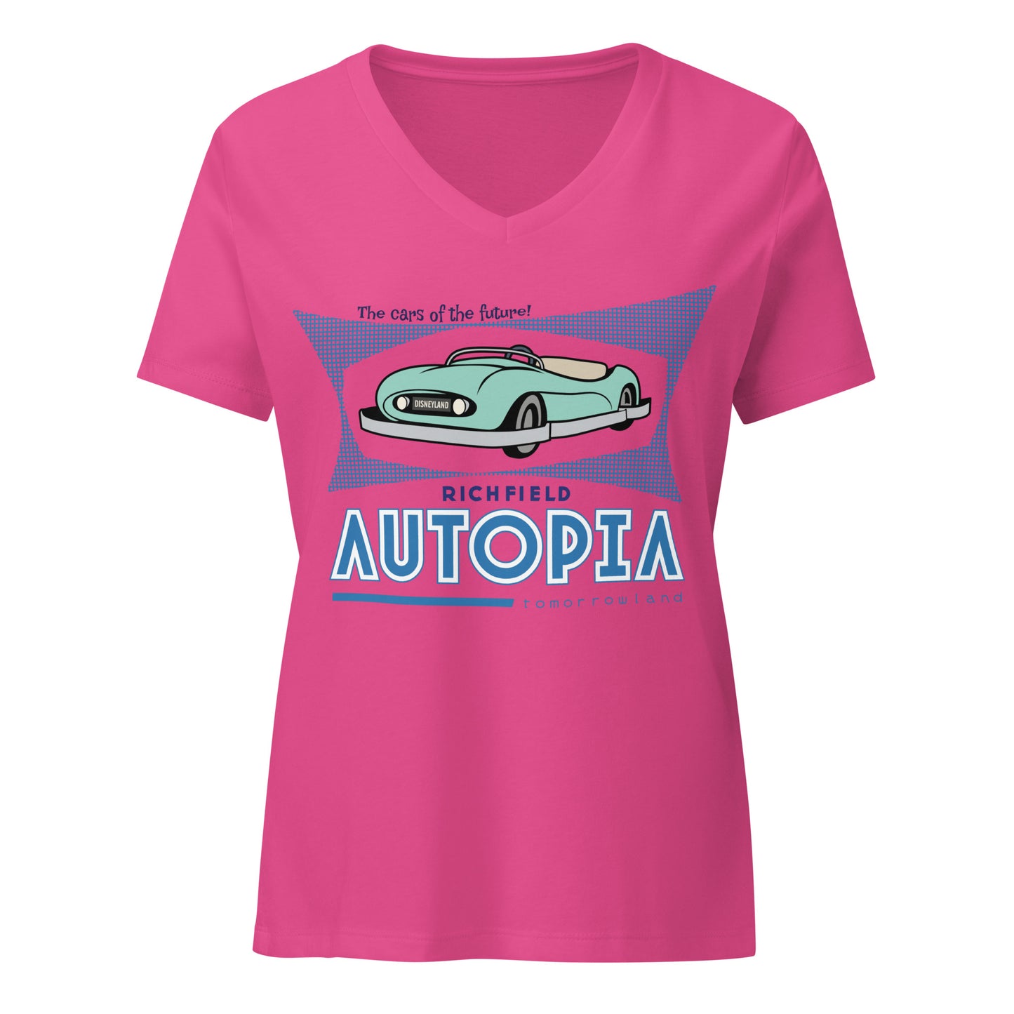 Inspired by the carefree spirit of Autopia, this women’s V-neck tee is your ticket to relaxed, retro style. With ultra-soft fabric and a flattering, easygoing fit, it’s perfect for everything from weekend drives to park daydreams. Comfortable, classic, and full of nostalgic charm—it’s like taking a joyride through tomorrow, wrapped in a tee.