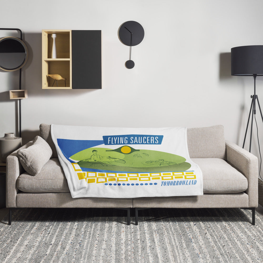 A throw blanket can be more than just cozy—it can transport you back to Tomorrowland! Inspired by the whimsical hover and bounce of Disneyland’s Flying Saucers, this custom-printed throw features a luxuriously soft silk-touch fabric with vivid, eye-catching color. Whether you're curling up for a nap or adding retro flair to your space, this blanket wraps you in warmth, wonder, and a dash of Space Age nostalgia.