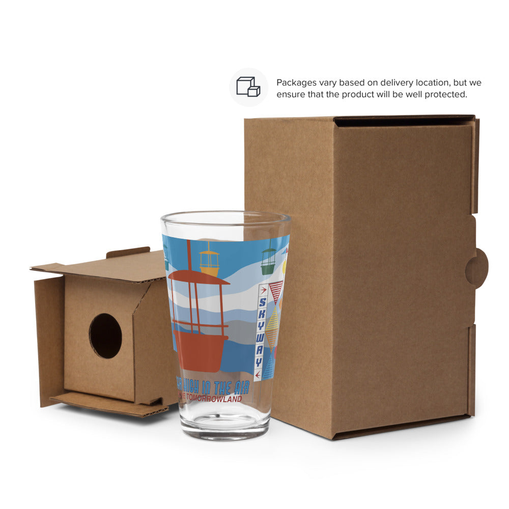 Inspired by the gentle glide of the Disneyland Skyway, this 16 oz shaker pint glass brings a touch of mid-century magic to your glassware collection. Whether you're enjoying a cool drink or mixing up your favorite cocktail, it’s perfect for reliving those carefree moments spent soaring between Fantasyland and Tomorrowland. Made from durable, high-quality glass, it’s ideal for everyday use—and for raising a glass to the golden age of Disney magic.