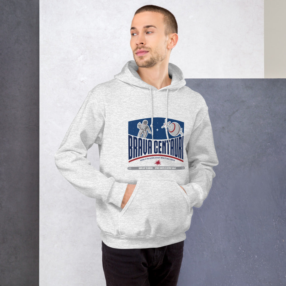 Cozy up to the comforts of tomorrow with this fan-favorite hoodie inspired by Horizons’ Brava Centauri—where the future was warm, welcoming, and wonderfully imaginative. With a roomy front pouch pocket, matching drawstrings, and a soft 50/50 blend of pre-shrunk cotton and polyester, this hoodie is made for cooler evenings and cosmic daydreams alike. Whether you’re stargazing from your backyard or envisioning life inside a spherical space colony, this hoodie wraps you in warmth, wonder, and just the right amount of retro-futuristic magic.