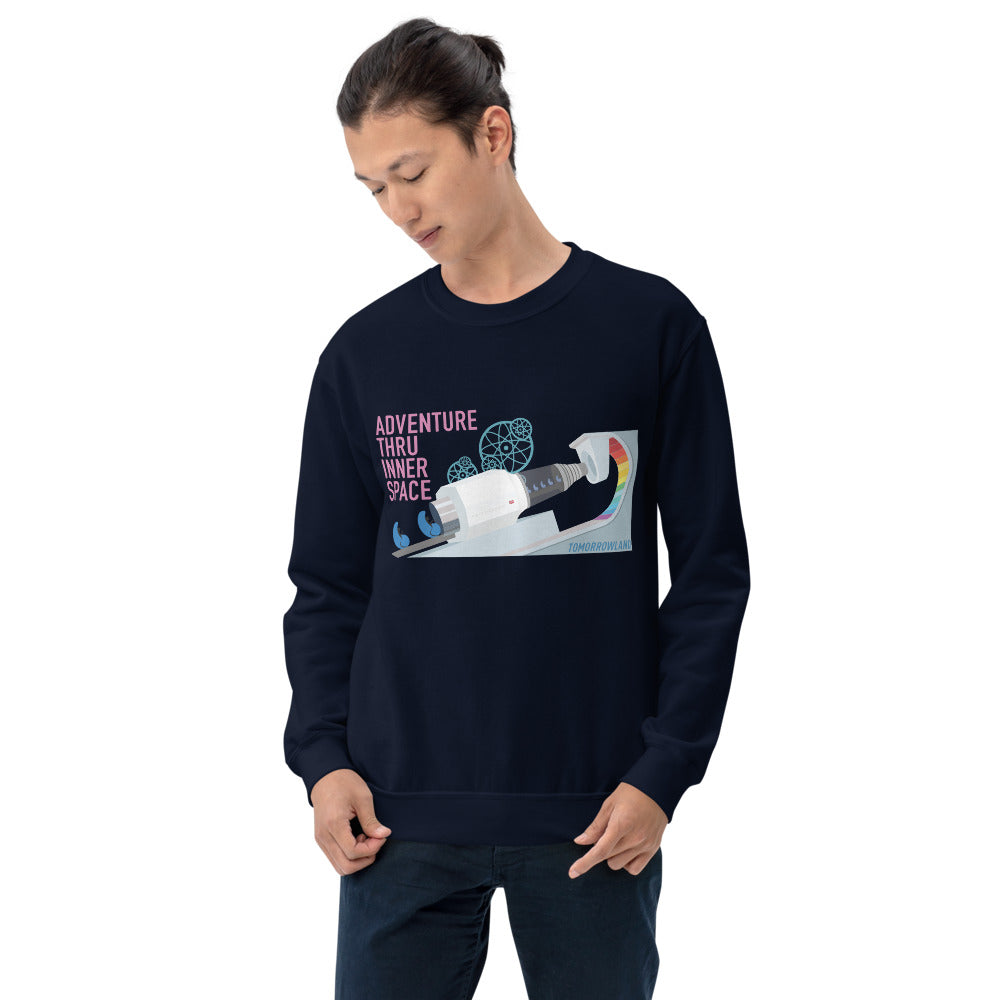 Say hello to timeless comfort with a nostalgic twist. Inspired by the journey through the Mighty Microscope, this Adventure Thru Inner Space-themed sweatshirt blends retro flair with everyday coziness. Crafted from a soft and durable 50/50 cotton-polyester blend, it features air-jet spun yarn for an ultra-smooth feel and a quarter-turned design to keep it crisp and crease-free. Whether you're lounging at home or heading out into the unknown, this sweatshirt wraps you in warmth—and a memory of Tomorrowland’s most mind-expanding adventure.