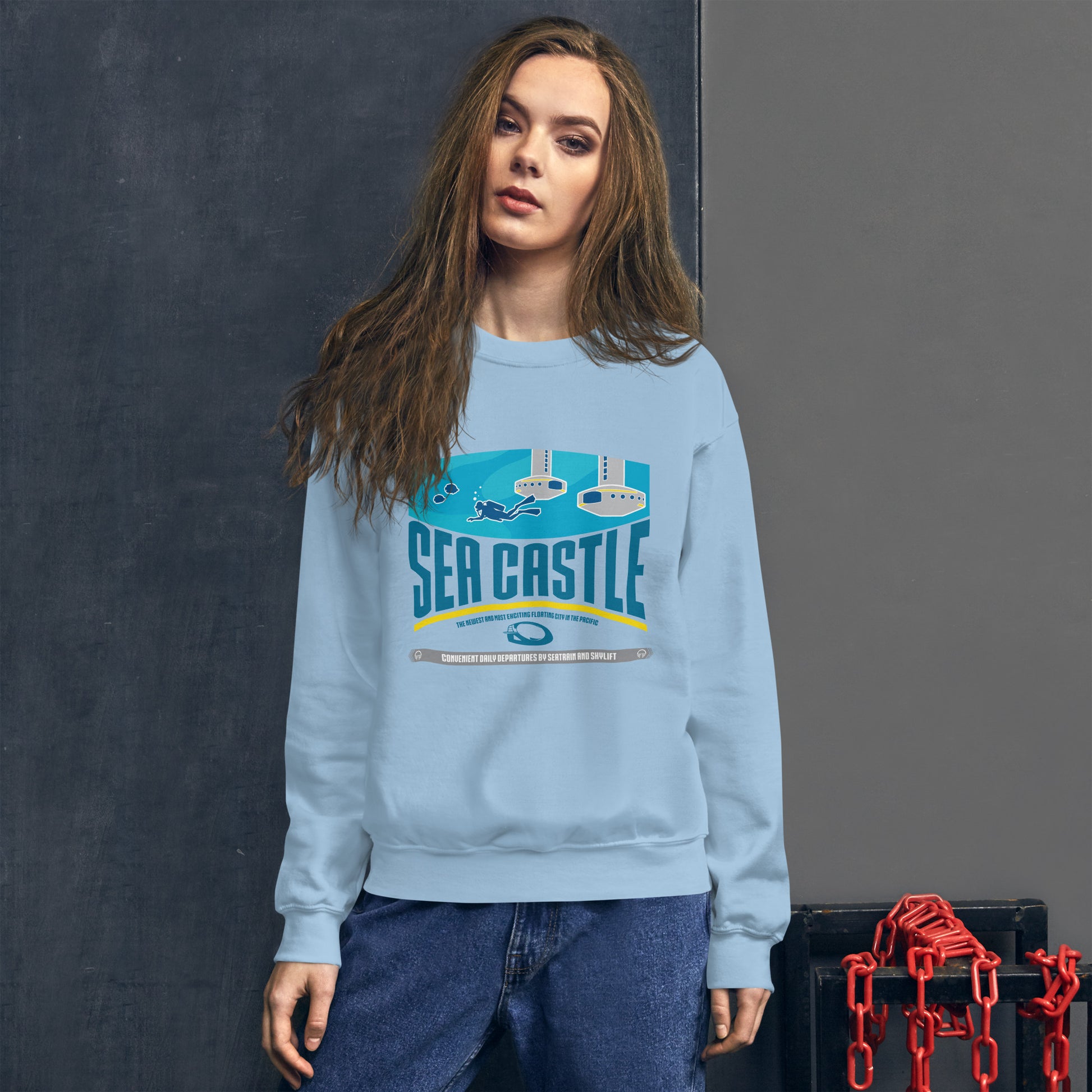 Channel the comfort of a cozy future beneath the waves. Inspired by the tranquil world of Sea Castle from EPCOT’s Horizons, this sweatshirt blends softness, durability, and everyday style into one timeless piece. Made from a 50/50 cotton-polyester blend with air-jet spun yarn for an ultra-smooth feel, it’s designed to keep you warm on cool nights and looking fresh all day with its crease-resistant, quarter-turned design. It’s more than just a sweatshirt—it’s a wearable memory from the ocean’s tomorrow.